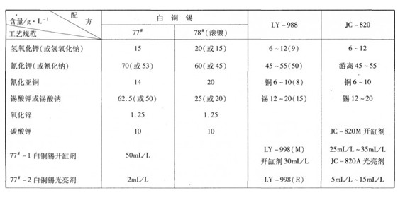 表4-1-6電鍍白銅錫工藝規范