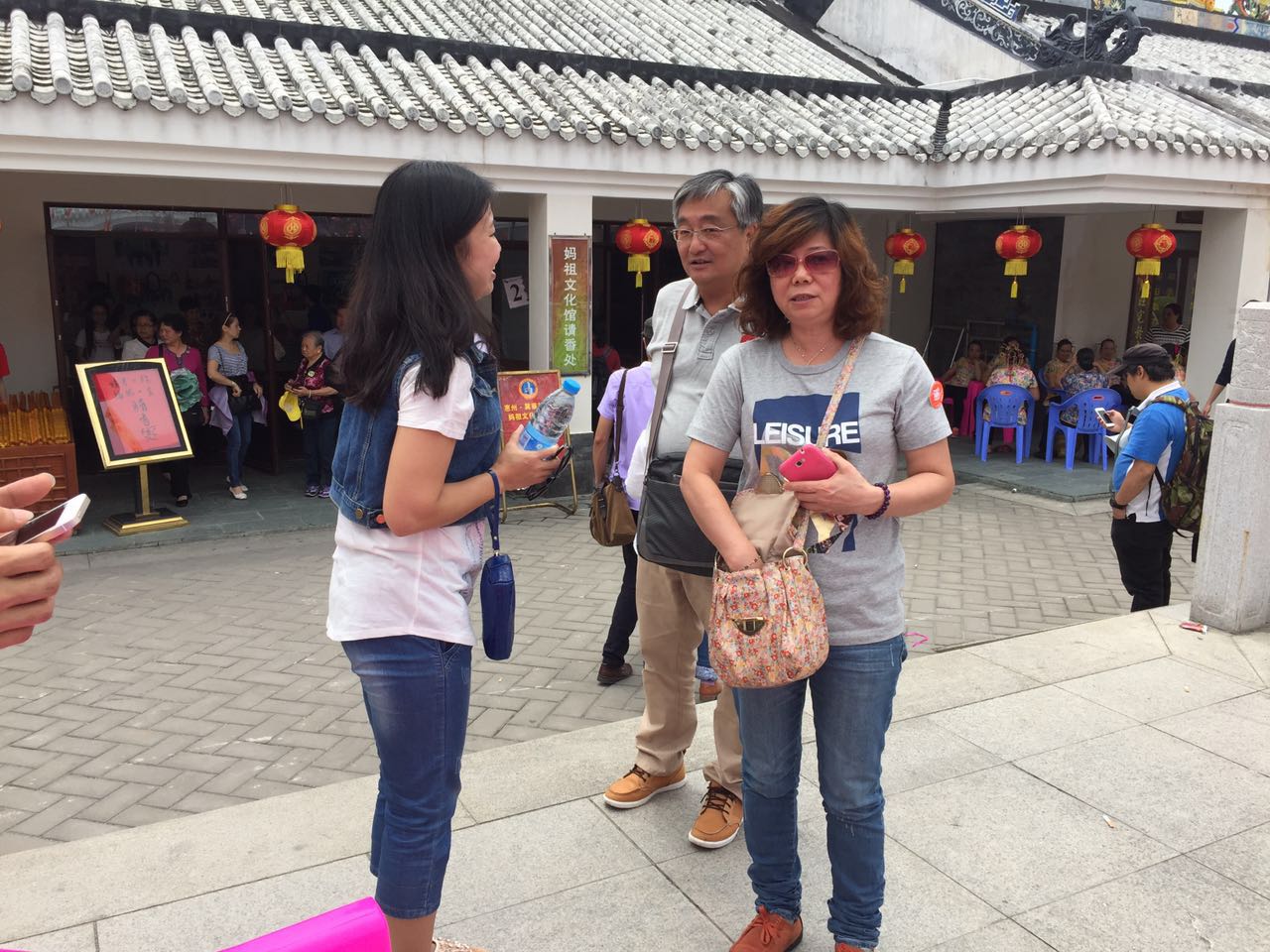 在經(jīng)過了四小時的車程后,于中午時分到達(dá)了素有中國的馬爾代夫之稱的惠東巽寮灣。一行人一下車便開始了第一項拓展挑戰(zhàn)——人員分成三組,分別找到天后宮的正門及概念銷售手中的礦泉水,且銷售出去后水還在手中。巽寮灣的景點(diǎn)之一的天后宮在這天正好遇上一年一度的媽祖誕辰,各地的旅游團(tuán)和朝拜人士都從五湖四海聚擁而至,人山人海的場面相當(dāng)熱鬧。