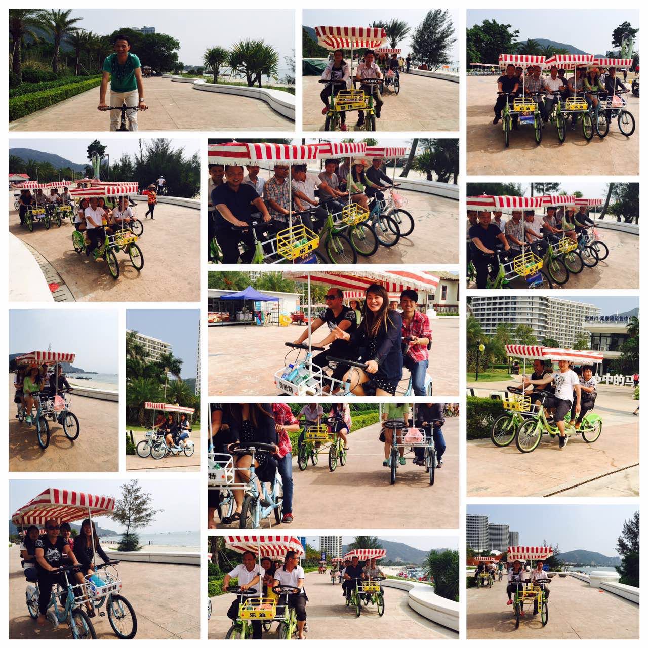 第二天一早大家便來到了素有中國式馬爾代夫之稱巽寮灣海灘邊,欣賞白沙灘,綠藍(lán)分明的海水,體驗(yàn)了慢船在海中捕魚及快艇海中速度般飛越的感覺,大家都意猶未盡不舍上岸……拓展公司見我們都不愿意離開,簡單的午餐過后,組織了大家集體騎自行車環(huán)海觀光,一邊悠閑地踩著自行車,一邊吃著冰激淋,一邊吹著海風(fēng)和同事們嘻鬧,讓我們大家都開懷大笑!