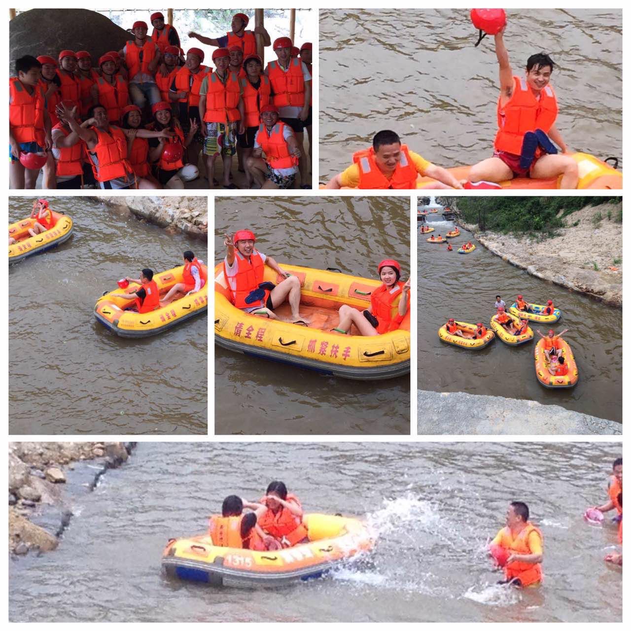 中午大家在一起享受了一番當(dāng)?shù)孛朗持螅?qū)車來到了巽寮灣龍騰峽漂流,開始了我們的第二項挑戰(zhàn)。盡情享受漂流給心靈帶來歡愉與刺激的同時,享受大自然的鬼斧神工之妙!平時一向溫和的李總和林總,也童真了回,孩子氣地直接從漂流艇上跳入水中,和大伙一起玩起了潑水大戰(zhàn),更加拉進(jìn)了彼此間的距離感。
